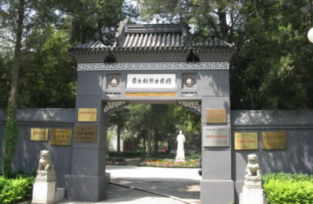 坐落于香山東南的萬安公墓內(nèi),占地面積2200平方米,為仿古式庭院建筑。1983年10月29日落成并對外開放。陵園為方形院落,李大釗漢白玉雕像高2米,立于李大釗及夫人趙紉蘭墓前。墓后為寬4米,高2米的紀念碑。碑陽題詞“共產(chǎn)主義運動的先驅(qū),偉大的馬克思主義者,李大釗烈士永垂不朽”。碑陰是中央為李大釗烈士撰寫的碑文。
