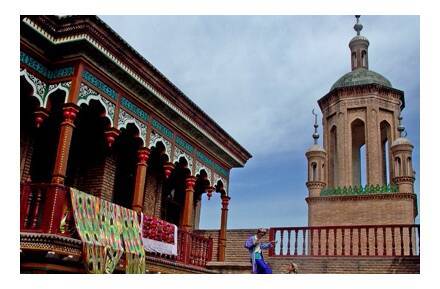 新疆為中國絲綢之路的主要通道,特別是盛產(chǎn)艾德萊斯綢的和田,更是古絲綢之路通往中亞地區(qū)貿(mào)易的主要集散之地和重鎮(zhèn)!鞍氯R斯綢”,即扎染綢。是維吾爾族極富民族特色的產(chǎn)品,也是維族婦女做衣裙最喜歡的綢料。艾德萊斯綢,按色彩分為黑、紅、黃和莎車式(即多色調)四類。兩種風格:一種是和田、洛浦以黑白兩色為主色調風格,金黃、寶藍、翠綠、桂紅等色點綴其間;另一種是喀什、莎車色彩絢麗、鮮艷的風格,由桃紅、杏黃、翠綠、寶藍、青蓮、紫紅等顏色搭配組成。綢料幅寬40厘米,長度以圖案二方連、三方連排列,呈長條形。