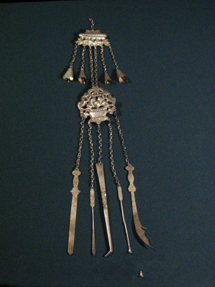 中華民族園收藏著上千枚中華各民族銀飾。大到鳳冠,銀衣、銀角、銀項圈,小如簪釵、戒指、耳環(huán)、銀扣琳瑯滿目,其中不乏明代、清代珍品。征集于北京、貴州、廣西、湖南、 山西、山東、陜西等地。跨越時間有上千年之久。