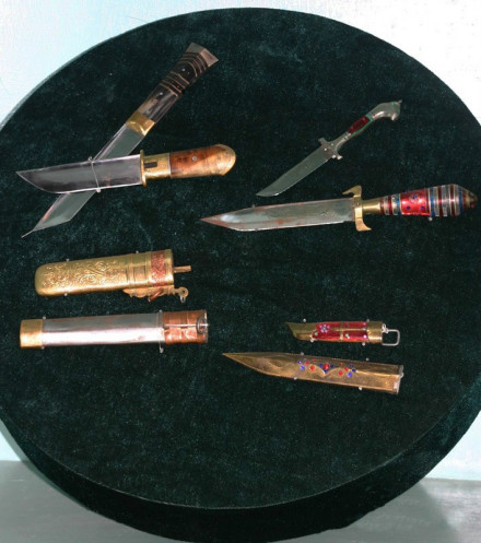 中華民族園收藏的三大民族刀具及在其影響下形成的“玉樹藏刀”、“蒙古刀”,造型各異,工藝精湛。其中清代、民國珍品頗多。征集于云南、西藏、內蒙古、新疆、甘肅、北京等地?缭綍r間有三百年之多。