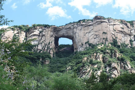 北京天門山風(fēng)景區(qū)坐落在風(fēng)景秀麗的北京市密云區(qū)石城鎮(zhèn)柳棵峪,距離北京東直門約80千米。為國家AA級景區(qū)。是以美麗壯觀的花崗巖地貌和獨特的變質(zhì)核雜巖構(gòu)造觀為主結(jié)合溪水潭穴、象形石、原始次生林等景觀的地質(zhì)公園。天門山西壁是國家級花崗巖地質(zhì)景觀,景區(qū)內(nèi)有不同年代崩塌堆積形成的各種花崗巖洞穴、象形石,是一座不可多得的地質(zhì)博物館。