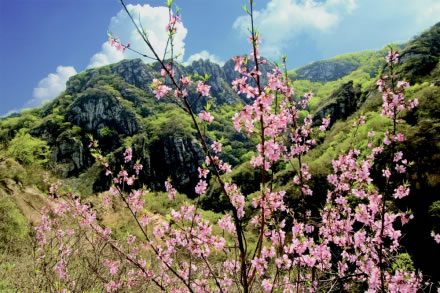 桃源仙谷風(fēng)景區(qū),位于密云區(qū)石城鎮(zhèn)境內(nèi)。整個景區(qū)可觀賞景點達(dá)80余處,山巒連綿,峽谷幽深,森林茂密。湖、瀑、潭、洞遍布景區(qū),四季美景如畫。桃花浪漫時,溯溪而上,宛如置身于桃花源。景區(qū)內(nèi)孝悌教育基地以巖壁為依托,用雕刻的工藝,形象化地宏揚(yáng)了中國傳統(tǒng)美德。景區(qū)峽谷森林茂密,潭瀑眾多,山峰雄偉,一湖六瀑十三潭,天畫三峰四洞連,近看長城似長龍,遠(yuǎn)望云海奇景觀,構(gòu)成了一幅世外桃源的天然風(fēng)景畫廊。