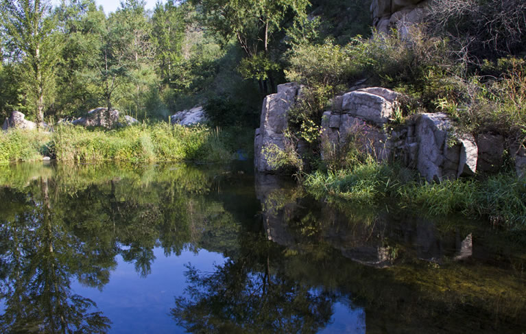 雙秀峰自然風景區(qū) 雙秀峰自然風景區(qū)位于大莊科鄉(xiāng)大青溝村東,鐵爐村南1.5公里,鄉(xiāng)駐地南7.8公里處。南與昌平接壤,北有鐵爐村,西沙梁村,東有大秦鐵路鐵爐火車站,西為連綿群山。雙峰并峙,直插云霄,中有一條石縫,故名。海拔672米,整個山峰大部分為褚紅色粗糙花崗巖,山西北側(cè)有匯泉而成的溪流,是碓石口河(東沙河)發(fā)源地。