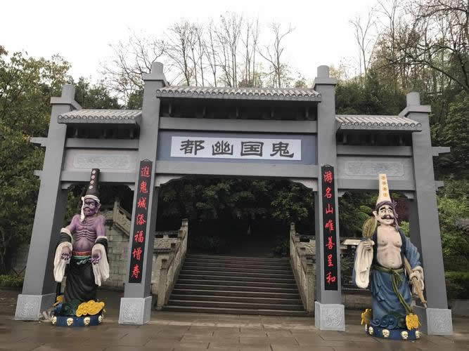 相傳漢代有陰長(zhǎng)生、王方平兩人曾先后在此修道成仙,白日飛升。至唐代,因有人誤將“陰”“王”兩姓聯(lián)綴為“陰王”,于是名山就逐步被傳說(shuō)誤會(huì)為“陰王”(陰間之王)所居之地,即演變成“陰曹地府”的鬼都。并在其后的歲月中,陸續(xù)建起了許多與“陰曹地府”相關(guān)的寺廟殿宇。