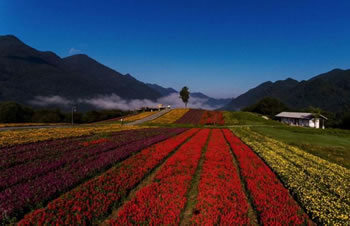 云中花海行程約13.5公里,有繁花樹影、嫣彩織帶、錦臺繽紛、錦繡花街等7大景點,種植了硫華菊、波斯菊、金雞菊、紫松果菊、大濱菊、黑心菊、金盞菊、翠菊、天人菊等50余種高山花卉,花期為5~10月。