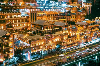 洪崖洞,原名洪崖門,是古重慶城門之一,位于重慶市渝中區(qū)嘉陵江濱江路88號(hào),2003年,總投資3.85億元對(duì)洪崖洞片區(qū)進(jìn)行舊城拆遷改造,于2006年9月竣工開業(yè),是兼具觀光旅游、休閑度假等功能的旅游區(qū)。