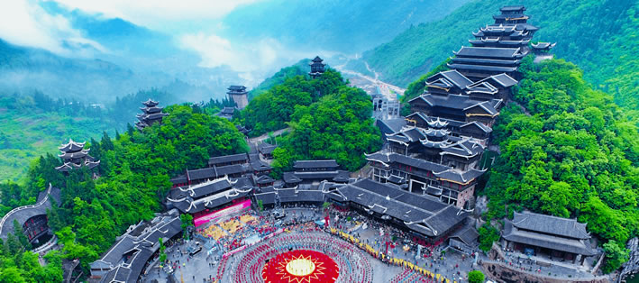 蚩尤九黎城,位于重慶市彭水苗族土家族自治縣靛水街道烏江邊。東隔摩圍山與彭水老城區(qū)相鄰,南接建設(shè)中的彭水新城,北至烏江并與湘渝高速下線互通。距彭水縣城8千米,距重慶市主城區(qū)175千米。