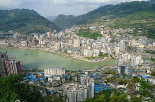 彭水縣,位于鄂黔隆起帶,向四川中臺坳下滑的斜坡上,形成西北高東南低的地勢特征。海拔190~1860米,相對高差1670米。地處武陵山區(qū),地勢西北高而東南低。地形分為構(gòu)造剝蝕的中、低山地形。地貌類型復(fù)雜,自然環(huán)境各異,“兩山夾一槽”是彭水地貌的主要特征。各類地貌中丘陵河谷區(qū)占13.39%,低山區(qū)占52.83%,中山區(qū)占34.03%。