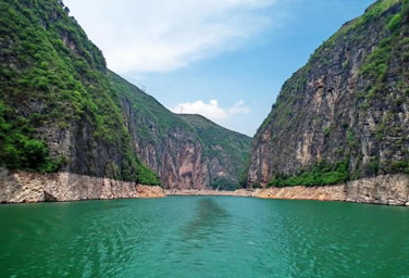 滴翠峽是小三峽的第三峽,從雙龍至涂家壩,全長20千米。主峽區(qū)從滴翠峽口至飛云洞,長15千米,是小三峽中最長、最幽深、最秀麗的一個峽谷。峽內(nèi)絕壁連綿,群峰競秀,竹木蔥蔥;凌空瀑布,一江碧流,鴛鴦戲水,群猴攀緣,饒有野趣。