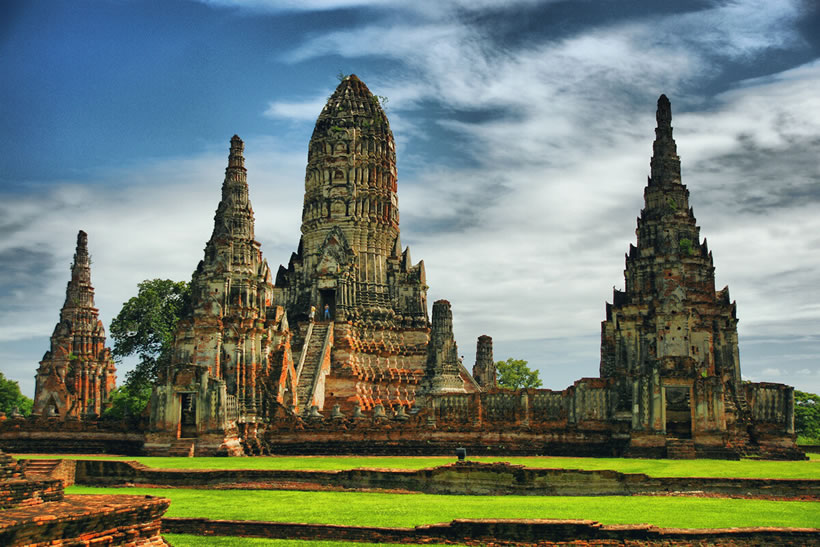 大城府(Phra Nakhon Si Ayutthaya) 大城府位于泰國(guó)中部,下轄16個(gè)縣,面積2556.6平方千米,人口約80萬。在泰國(guó)首都曼谷以北約80千米,湄南河、華富里河、巴塞河三河交匯,形成了一個(gè)天然河流島。漫步島上,一座座古老佛塔和寺廟,磚紅色的殘?jiān)珨啾陲柦?jīng)風(fēng)霜,訴說著這里曾經(jīng)的輝煌。這里是泰國(guó)世界文化遺產(chǎn)之一——大城古城遺址的所在地。 大城古城始建于1350年前后,是泰國(guó)歷史上第二個(gè)封建王朝大城王朝的國(guó)都。14至18世紀(jì),大城是一座繁榮富裕、人口稠密的大都市,同時(shí)也是重要的商業(yè)和宗教中心,僅主島區(qū)域的各式建筑就有超過3000棟。1767年,大城因戰(zhàn)爭(zhēng)而損毀,只有石質(zhì)佛塔、寺廟和宮殿得以保存。從1935年開始,泰國(guó)文化部藝術(shù)廳陸續(xù)開展對(duì)大城古城遺址的挖掘和保護(hù)工作。1976年,泰國(guó)政府宣布在古城遺址基礎(chǔ)上建立大城歷史公園,在大約20年的時(shí)間里,公園逐步從原有的289公頃擴(kuò)大到了480公頃,最終覆蓋全島以及周邊部分村鎮(zhèn)。1991年,大城歷史公園最初的289公頃區(qū)域,包括瑪哈泰寺、玉佛寺、柴瓦納蘭寺等重要遺跡入選聯(lián)合國(guó)教科文組織的世界遺產(chǎn)名錄。大城古城遺址成為泰國(guó)僅有的3個(gè)歷史類世界文化遺產(chǎn)之一。聯(lián)合國(guó)教科文組織認(rèn)為,歷史悠久的大城古城見證了泰國(guó)民族藝術(shù)誕生的杰出時(shí)代。