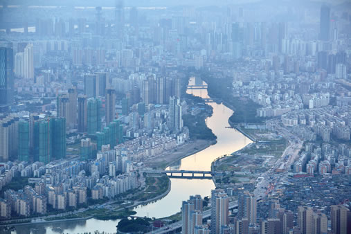 福州市地貌屬典型的河口盆地,東有鼓山,西有旗山,南有五虎山,北有蓮花峰,其海拔多在600~1000米之間。南部為盆地的大部分;北部為山地,從西南向東傾斜;西部為中低山地;東部丘陵平原相間。山地、丘陵占全區(qū)土地總面積的72.68%,其中山地占32.41%,丘陵占40.27%。鷲峰、戴云兩山脈斜切南北,閩江橫貫市區(qū)東流入海。