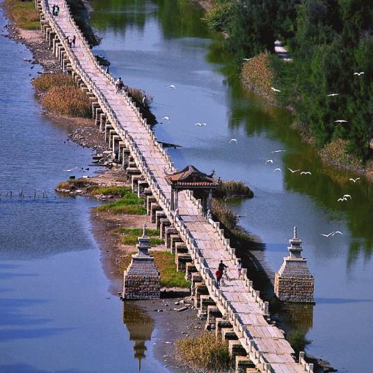 洛陽橋,曾用名“萬安橋”,在萬安橋(洛陽橋)尚未修建之時,這里原有古渡口——萬安渡(亦名洛陽渡),故名。洛陽橋是現(xiàn)存最早的跨海梁式石橋,是中國福建省泉州市境內(nèi)連接臺商投資區(qū)和洛江區(qū)的一座橋梁,位于洛陽江水道之上,也是著名的跨海梁式大石橋,素有“海內(nèi)第一橋”之譽,是古代“四大名橋”之一。