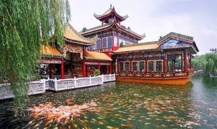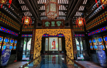正門的白石仿古牌坊,雄偉巍峨,巧奪天工。園中的陶塑、瓷塑、磚雕、灰塑、石刻、木雕等藝術(shù)精品琳瑯滿目。驚世之作,當數(shù)已列入大世界吉尼斯之最的瓷塑浮雕《清明上河圖》和巨幅磚雕《吐艷和鳴壁》。荔島中的聚家閣金碧輝煌,雍容華麗,閣內(nèi)供奉著萬世師表孔子銅像,供游人瞻仰。