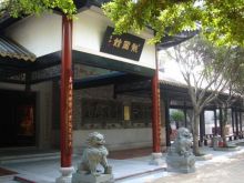龍圖館極具嶺南古代建筑風格。前后有廊,中間有天井,風火山墻。館外館內(nèi)均有不少磚雕、木雕、泥塑、灰塑等,造工精巧,古樸典雅。大門外18棵羅漢松排列成行,象征包公出巡時的儀仗隊。旁邊是一排紅花紫薇,開花時節(jié),嫣紅翠綠,相映成趣。“龍圖館”橫匾下,有對聯(lián):“木石有靈再現(xiàn)包公清正事,匠師無憾巧傳百姓仰廉情”,“投硯鎮(zhèn)江流尚有遺待明古訓,蜚聲留宋典不曾枉法負平生”。既頌揚了包公輝煌政績,又突出了龍圖館的文化內(nèi)涵。