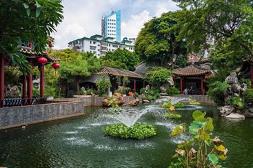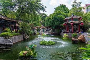 在花木配置方面,園內(nèi)花卉果木逾百種,除了嶺南園林常用的果樹,還栽種了蘇杭園林特有的紫竹、枸骨、紫藤、五針松、金錢松、七瓜楓、羽毛楓等,并從山東等地搜集了龍順棗、龍瓜槐等北京樹種,其中銀杏、沙柳、紫藤、龍眼、水松等古木樹齡已百年有余。