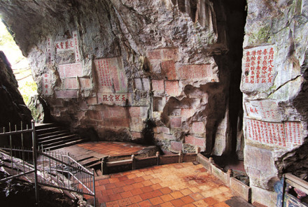 石室洞內(nèi)外的摩崖石刻,不僅是一首首文情并茂的山水詩(shī),而且是千年滄桑歷史印記。