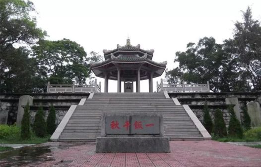 方飯亭位于汕尾市海豐縣城北郊五坡嶺上,坐西北向東南,占地960平方米。亭為六柱八角重檐攢尖頂,通高9米;亭內(nèi)覆蓋著一座廡殿頂古石亭,上刻“方飯亭”三字,內(nèi)豎立石碑刻有文天祥半身畫像,像上方陰刻小篆《衣帶銘》:“孔曰成仁,孟曰取義,惟其義盡,所以仁至,讀圣賢書,所學何事,而今而后,庶幾無愧!”兩側亭柱刻有明潮州狀元林大欽所撰對聯(lián):“熱血腔中只有宋,孤忠?guī)X外更何人!蓖で坝形鍖34級臺階通于嶺下草埔,當中橫置著“一飯千秋”的石刻碑,兩旁豎立著歷代重修碑記,周圍竹木蔥蘢。該亭始建于明代正德十年(1515年),為紀念南宋丞相文天祥抗元在五坡嶺不幸被捕而建。亭前原有主建筑“表忠祠”和“忠義牌坊”,于民國二十七年(1938年)秋遭侵華日軍飛機炸損。1955年,海豐縣政府撥款重修方飯亭,并加蓋八角大亭予以保護。1957年5月,被縣政府頒布為縣級文物保護單位。