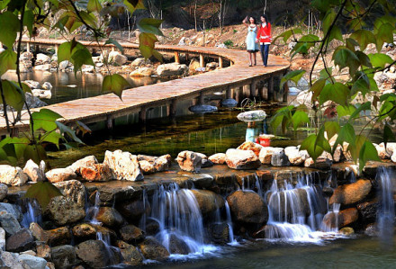 在石門風(fēng)景區(qū)的芙蓉棧道入口也種植了近30畝頗有特色的:“梯田油菜花”。涓涓的細(xì)流、清澈的潭水、古樸的小屋以及山坡上點(diǎn)綴的桃花,為“梯田油菜花”營造出濃郁的田園風(fēng)味。油菜花最佳觀賞期為2-3月。