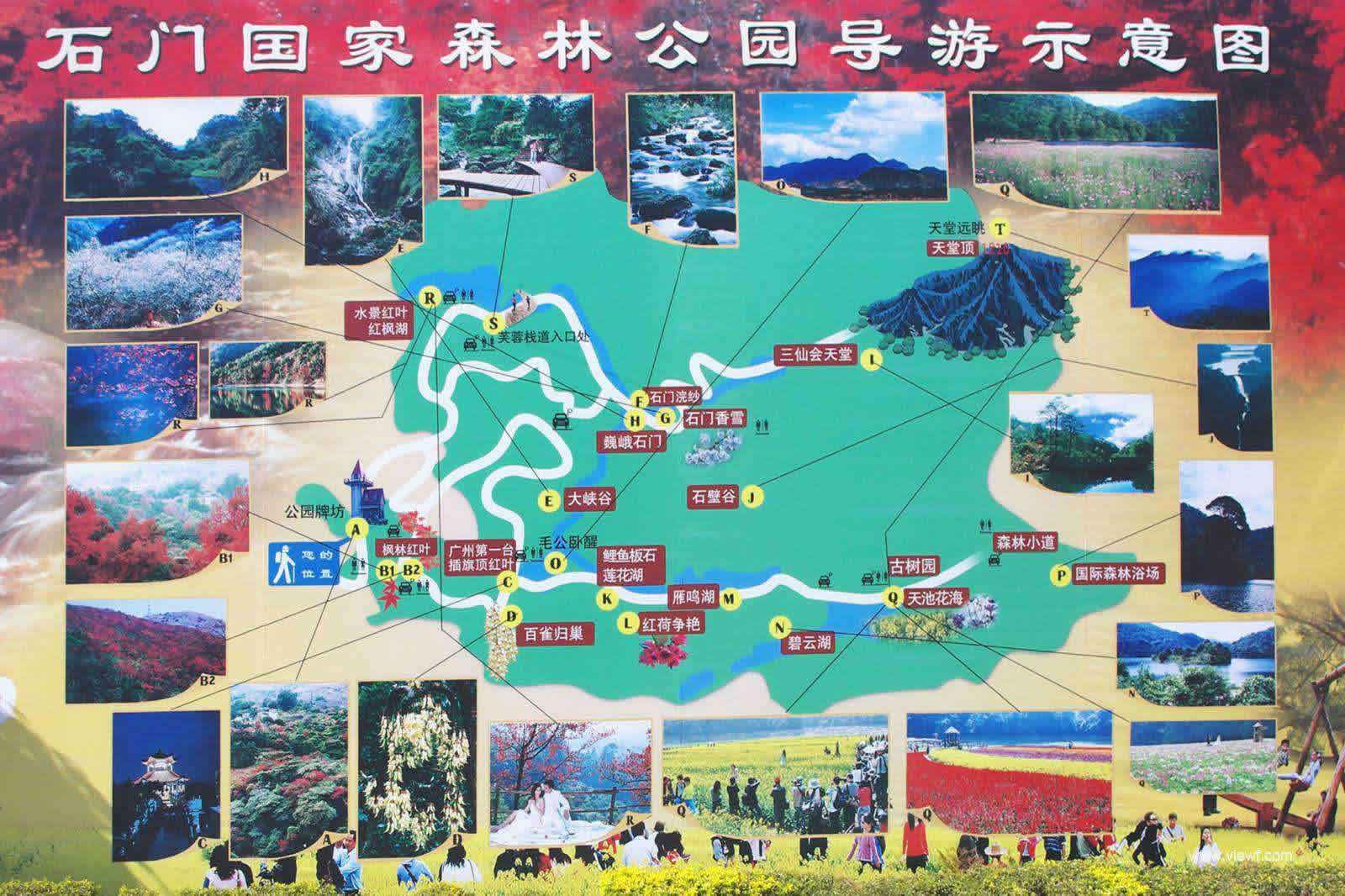 石門森林公園因地處位置比較特別,在從化市、增城市、惠州龍門縣的交界處,更有秀氣且不乏婆娑的華南地區(qū)特色的森林,因此這里的森林并非單一綠色的森林,在不同季節(jié),溫度及氣候?qū)⒐珗@打扮得多姿多彩。另外,在天池花海景點(diǎn),公園不同季節(jié)也種植了不同花卉品種供游客觀賞。主要如下: