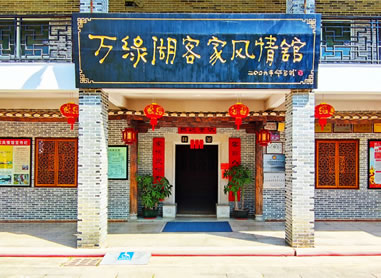 萬綠湖客家風情館,于2006年10月建成開館,客家風情館以客家特有的騎樓建筑風格進行設計施工,館名“萬綠湖客家風情館”由中國漫畫家華君武題寫,館內(nèi)介紹著客家的風俗習慣及客家日常生活物件,展廳共分2層,建設面積近2000平方米,建筑風格完全按照傳統(tǒng)客家建筑設計。