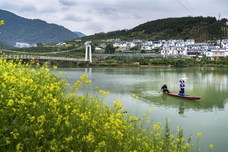 新豐鄉(xiāng)村旅游區(qū)位于百色市西林縣普合苗族鄉(xiāng)新豐村,是1998年由天生橋水電站淹沒(méi)區(qū)搬遷而成的移民新村。 全村面積2.41平方公里,轄4個(gè)村民小組。美麗的馱娘江穿村而過(guò),將村莊劃分為兩區(qū)四組兩半島,三個(gè)游覽區(qū),由兩座特色的吊橋相連。新豐水電站的建成,在高峽間形成平湖,高聳的青山與廣闊的湖面,讓新豐村靜臥在一幅絕美的山水畫(huà)中,使這里成為眾多攝影愛(ài)好者的心儀之地。