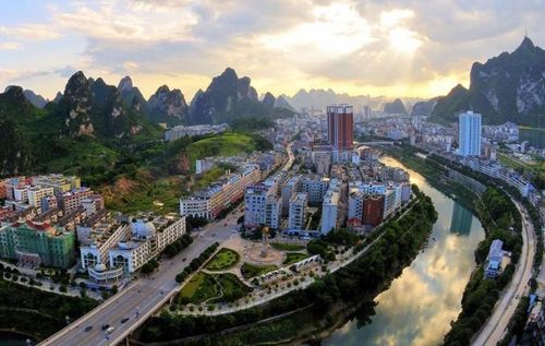 環(huán)江毛南族自治縣 面積4572平方千米,人口27.6萬,政府駐思恩鎮(zhèn)江濱路98號,下轄1個街道、6個鎮(zhèn)、6個鄉(xiāng)