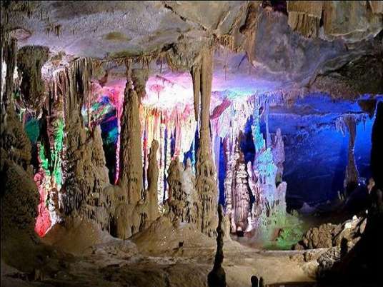 此洞分為4個大殿堂,輝煌瑰麗,多姿多彩,讓人看了留連忘返。其中最為壯觀的是那個100多米高,幾百米寬、1000多米長的大殿堂內,幾十個70~80米高、3~5米直徑的鐘乳石柱,構成龐大的石塔群,挺拔高聳,雄偉壯麗,讓人驚嘆不已。加上洞中霧氣繚繞,變幻無窮,更使這個巍巍景觀顯得詭秘多姿。這些巨大的鐘乳石塔,是經過幾億年巖溶發(fā)育的結晶,其中最大的石筍需十人方能合圍,最高的石柱達39米,實屬“天下之最”。