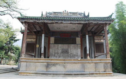 古戲臺位于姚江邊,寶珠觀東側。始建于明朝嘉靖三年,也就是1524年的黃姚古戲臺。它屬單檐歇山木石磚瓦結構,整座戲臺平面呈“凸”字形,是一座八柱式,帶后臺、廂臺、邊欄的亭閣式戲臺。