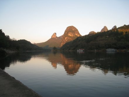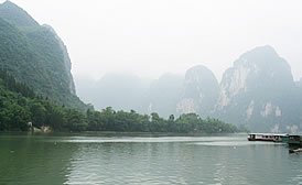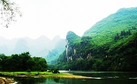 楊堤游覽區(qū)北起楊堤官巖村,接興坪游覽區(qū),約18公里江段,是漓江的黃金水段。楊堤兩岸翠竹成林,連成十里的綠色翠屏,搖曳在青山、秀水、飛瀑、淺灘之間,塑造了漓江景區(qū)清幽、寧?kù)o的環(huán)境。