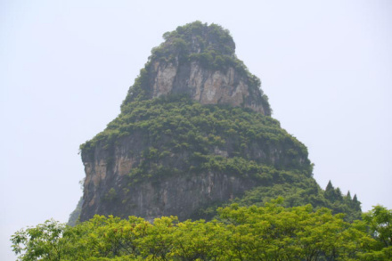 塔山在漓江東岸、小東江西畔,與穿山隔江相望,海拔194米,相對(duì)高度44米,面積2.75公頃。塔山與穿山100萬(wàn)年前為同一山體, 其后地殼上升,地下水水面下降,山體被割切分離成各自獨(dú)立的孤峰。