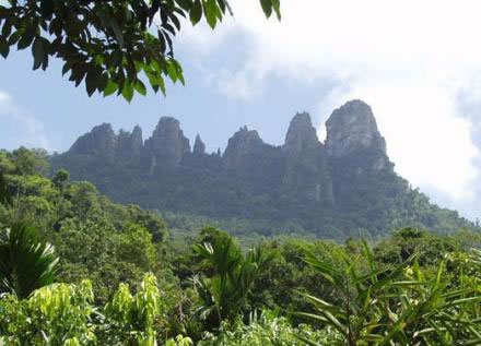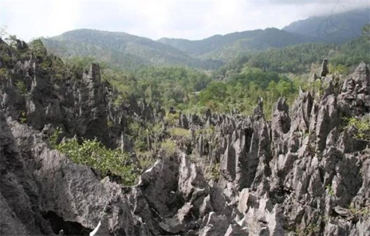 仙安石林位于毛感鄉(xiāng)境內(nèi),距保亭縣城約40公里路程。1992年以前這里還是一個(gè)鮮為人知的地方,只有極少數(shù)采藥人偶爾闖進(jìn)過林中,因?yàn)椴涣私膺@奇怪的石頭,他們敬畏地將此山稱為“鬼山”或“神山”。1992年,海南師范學(xué)院的楊火教授在偶然中發(fā)現(xiàn)這一處瑰寶,并命名為“仙安石林”。仙安石林集奇石青山、懸崖洞穴、古樹巨藤于一體,本已獨(dú)得大自然萬般寵愛。1996年,距此數(shù)十里地的一個(gè)苗村搬遷到南片石林旁的一處平地上,石林又平添了一層濃郁的苗家風(fēng)情。