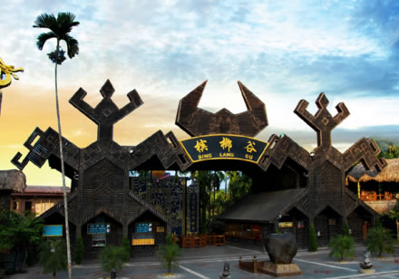 甘什嶺檳榔谷原生態(tài)黎苗文化旅游區(qū)自然景觀包括:黎族田園風(fēng)光、海南島面積最大、最古老的擯柳園、多種亞熱帶古樹、山泉溪水成多級(jí)瀑布從園中穿流而形成的怪石群。人文景觀有:“奧雅宮”(黎族頭人住的房);“隆閨屋”(黎族姑娘居住和娛樂的場(chǎng)所)等。來海南旅游觀光客可參與黎家古老的弓騖射擊,品嘗黎家竹筒飯和黎家山茶,觀賞多姿多彩的黎族歌舞。