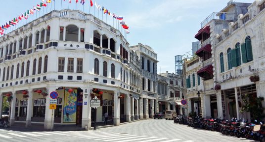 主要分布于?谑袇^(qū)的得勝沙路、文明東路、中山路、博愛路、長(zhǎng)堤路等幾條老街區(qū),是?谑幸惶幾罹咛厣慕值谰坝^,其最古老的建筑四牌樓始建于南宋,已有700多年歷史。2009年6月10日,在由國(guó)家文化部和國(guó)家文物局主辦的首屆“中國(guó)歷史文化名街”評(píng)選推介活動(dòng)中,騎樓老街憑借其極富中西特色的建筑風(fēng)格和歷史風(fēng)味的文化底蘊(yùn)榮獲首批十大“中國(guó)歷史文化名街”稱號(hào)。