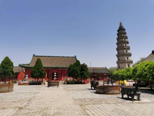 寶云寺內(nèi)有一塔,高36.5米,塔體為八面棱錐體磚木結(jié)構(gòu),自四層以上四面有門,塔的各層建筑風(fēng)格各異,或成鴛鴦斗拱,或成梅花斗拱,雄渾古樸,氣勢(shì)磅礴。若登塔頂,需有一定的勇氣,因?yàn)槊康且粚佣家@塔沿半圈,找到另一側(cè)的入口。寶云塔原名擎天塔,位于衡水市區(qū)西南的舊城村東。該塔原在寶云寺內(nèi),因此稱寶云塔。