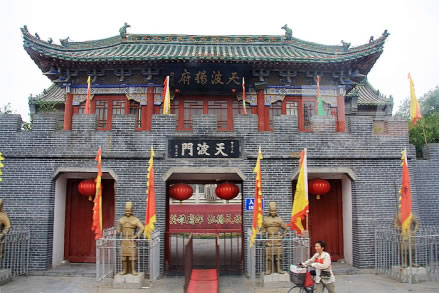 天波楊府是北宋抗遼名將楊業(yè)的府邸,位于宋朝首都東京(今開封市)城內(nèi)西北隅,天波門的金水河旁,故名“天波楊府”。因楊業(yè)忠心報(bào)國(guó),楊家將世代忠良,宋太宗趙光義愛(ài)其清正剛直,不善巧言諂媚的性格,敕在天波門的金水河邊建無(wú)佞府一座,賜金錢五百萬(wàn)蓋“清風(fēng)無(wú)佞天波滴水樓”,并親筆御書“天波楊府”匾額。為國(guó)家AAAA級(jí)景區(qū)。