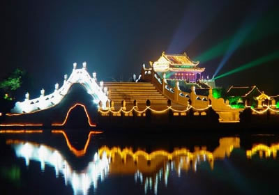 開封是中國六大古都之一,作為北宋王朝的都城達(dá)167年之久。當(dāng)時(shí)的宋京極為繁盛,宮殿建筑很輝煌?上Ы鹑饲终奸_封時(shí),宋皇宮建筑大部分被燒毀了。后來,又經(jīng)過多次兵燹和黃河決堤,宏偉的宮室已蕩然無存。在過去皇宮遺址上只留下了龍亭公園這座的建筑物,而這座龍亭公園卻是清代所建。龍亭公園坐北朝南,高踞在臺(tái)基之上。從地面到大殿有72級(jí)臺(tái)階。臺(tái)階中間是雕有云龍圖案的石階。登上平臺(tái),四周有石欄圍繞。大殿是木結(jié)構(gòu),重檐歇山式建筑,很壯觀。游人登上平臺(tái),入殿觀看陳列的文物后,多在石欄前眺望開封古城景色。龍亭公園前有一條筆直的大道,道旁有兩個(gè)東西對(duì)峙的湖,東為潘湖,西為楊湖。傳說,東湖為宋朝“太師”潘美的府第,他陷害忠良,是個(gè)奸臣,宅院里的湖,水是渾的;西湖為宋朝搞遼名將楊業(yè)的府第,他舍身救國,是個(gè)忠臣,宅院里的湖,水是清的。這個(gè)說法沒有科學(xué)根據(jù),但反映了人們對(duì)忠奸的態(tài)度和感情。現(xiàn)在龍亭公園,潘、楊兩湖,以及龍亭公園后面的假山花園,都辟為龍亭公園公園。從龍亭公園前的大道,過潘、楊兩湖,再往南,仍是一條筆直的大道,兩旁店鋪林立,這條大道歷史上是一條寬闊的御道。
