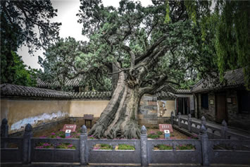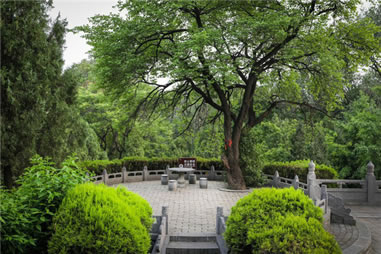 二程手植槐,樹高19.5米,圍粗4米。雖然樹干嶙峋,中空外實,槐冠卻叢撥陰濃,新枝簇簇,樹姿優(yōu)美,老而不衰。相傳為北宋理學(xué)名家程顥到嵩陽書院講學(xué)時親手所栽。