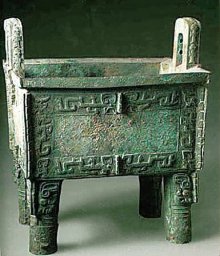 后母戊鼎,1939年從王陵區(qū)出土,通高1.33米,長1.10米,寬0.78米,重達(dá)875公斤,是世界上已發(fā)掘的最大的一件青銅器,是我們的國寶。如此大的重器,澆鑄起來特別困難。據(jù)估計制造這樣的重器需要明確的分工和協(xié)作,從煉銅的澆鑄,從制模到拆范需要130多人同時施工。青銅器中,銅、錫、鉛的含量比例,與現(xiàn)代所鑄青銅中銅、錫、鉛的比例基本相同中,可以想象當(dāng)時治煉技術(shù)是何等的高超。鼎最開始的作用只是一口煮肉用的鍋,到后來,隨著生產(chǎn)力的發(fā)展,逐漸變成了權(quán)力的象征。