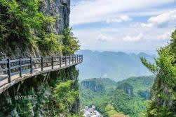 絕壁長廊,又叫“絕壁棧道”,始建于2007年10月,全長488米,118個臺階。位于海拔1700余米、凈高差300余米之絕壁山腰間。該工程既汲取了巴蜀古棧道營造法,又結(jié)合現(xiàn)代鋼筋砼施工之先進工藝,科學安全,凝聚著當代開發(fā)創(chuàng)業(yè)者的勇氣與智慧。沿棧道游覽,一路可以欣賞武陵風光。該棧道共有七道彎八道拐,寓意是:路七彎八拐,心始終如一。歌曰:北斗七星有七斗(dǒu),絕壁棧道有七抖(dǒu);經(jīng)過一番驚嚇后,人生道路手拉手。