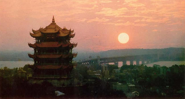 李白寫下的詩詞與黃鶴樓有關(guān)的不下五首,其中有一首《與史郎中欽聽黃鶴樓上吹笛》:“一為遷客去長沙,西望長安不見家。黃鶴樓中吹玉笛,江城五月落梅花!睆拇,“江城”便成為武漢的美稱。