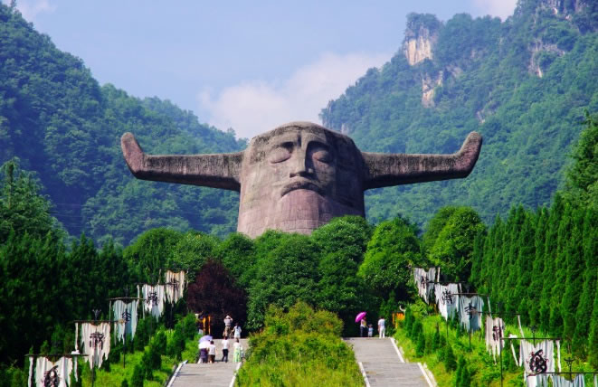 2002年通過國家質(zhì)量ISO9001和ISO 14000體系認證,被評為國家4A級景區(qū),建成于1997年,是神農(nóng)架一個自然和人文相結(jié)合的景區(qū)。景區(qū)有特色地分為四個部分:古老植物園、千年杉王、神農(nóng)祭壇、購物長廊。祭壇內(nèi)神農(nóng)塑像高大雄偉,莊嚴肅穆,雙目微閉,似乎在洞察世間萬物。它以大地為身軀,頭像高21米,象征中華民族在21世紀蒸蒸日上,寬35米,與它的高加起來共56米,象征著56個民族的大團結(jié)。祭壇外圍的五色石代表著五行,即金、木、水、火、土,內(nèi)方外圓,即有天圓地方之意。祭壇的兩側(cè)用八組壁畫記錄著遠古神農(nóng)氏的功德,即降牛以耕、焦尾五弦、積麻衣葛、陶石木具、原始農(nóng)耕、日中為市、穿井灌溉。八組壁畫以藝術(shù)的手法敘述了神農(nóng)氏的豐功偉業(yè),表達了子孫們的無限追戀。