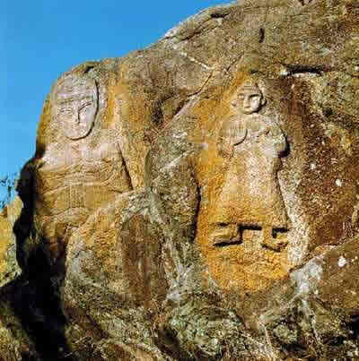 沿著象石邊的山腳石砌小路,西行約五六十米,摩崖造像石刻便展現(xiàn)在眼前。在一處赭黃色的高低參差的崖壁上,依山就勢鐫刻著100多個大小不一、造型各異的人像,其內(nèi)容有道家傳說,也有佛教故事。這些人物形象,雖經(jīng)歷了1000多年的櫛風沐雨,但仍栩栩如生,輝耀于石壁。專家認為孔望山摩崖石刻,是我國迄今為止發(fā)現(xiàn)的最早的一處佛教摩崖造像,1980年,經(jīng)國內(nèi)權威人士鑒定,確認這是東漢時期佛教內(nèi)容的造像,它比敦煌莫高窟還要早200年,被錄入《世界古跡叢書》的“中國卷”。過去一直認為佛教是自西向東傳播,孔望山摩崖造像的發(fā)現(xiàn),無疑是對傳統(tǒng)的定論提出了挑戰(zhàn)。 它是我國佛教史和美術史上的瑰寶,也是連云港市最珍貴的古跡之一。