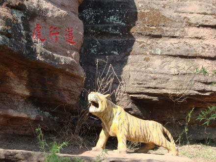 位于虎山東麓的五蓮池澗谷口。巨大的赤色崖壁上,有一天然凹洞,俗稱老虎窩。據(jù)說40年前虎窩內(nèi)可坐4人打牌,后來因有人在窩上方開山炸石才破壞了景點(diǎn)的原貌,如今仍見一淺洞。