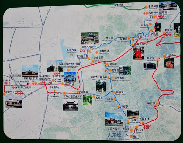 茅山,是環(huán)境優(yōu)美的風(fēng)景勝地。茅山自然風(fēng)光清新秀美,山區(qū)形勝獨(dú)特,枝繁葉茂,景色迷人,自古就有九峰、十九泉、二十六洞、二十八池之美景。這里的山不高卻秀雅,這里的水不深卻澄清。春游茅山,山林滴翠,草木芬芳。滿世界的嫩黃襯托這一處綠山,滿山間的野花給了這山林一路的狂想。薄霧輕如紗,夕陽宛如畫。夏游茅山,綠樹成蔭,蔥蘢一片。你可以在綠樹掩映下的九曲十八彎上揮汗如雨,欲與大山試比高;你也可以朝觀日出,暮賞彩云。雨后初晴,但見一絲薄云在深谷幽林間繚繞,此時(shí)山上的樹木閃爍著猶如水晶般晶瑩的綠。秋游茅山,天高云淡,色彩斑斕。林間飄落一地的楓葉定會引起你無限的遐想,看蘆葦花在風(fēng)中搖曳著輕盈,聽喜客泉水叮咚暢響,感受生命在不經(jīng)意的平淡中輪回。冬游茅山,銀裝素裹,霧松飄情。抑或暖陽普照,滿山林充斥著蓄勢待發(fā)的理想。萬簌俱靜中聆聽那道家仙樂,大有“花飛佛地三千里,人在瑤池十二層”之感。