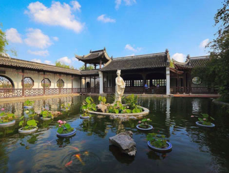 古典家具館位于莫愁水院西側(cè),是典型的江南園林庭院建筑。館內(nèi)家具展覽分為三個廳堂,分類展出二百余件清代古典家具。這些家具選用酸枝、花梨上等木材制成。其種類多樣,有寶座、案幾、八仙桌、翰臺,還有棋桌、帶軸圓桌等,造型奇特,做工精巧。其中部分家具系成套展示,尤為珍貴。