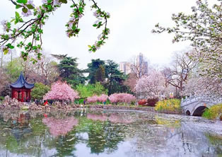 海棠精品園位于莫愁湖西區(qū),占地面積約12600平方米。園內(nèi)栽植海棠近千株,四十多個品種。主要品種有龍形海棠、莫愁紅、長壽樂、貼梗海棠、東洋錦、世界一號、白雪公主、高樁一品香、北美海棠系列等。