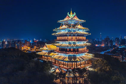 閱江樓隱喻閱江攬勝之意,主樓通高52米,外觀4層暗有3層,共7層,碧瓦朱楹、彤扉彩盈,具有鮮明的古典皇家氣派,為典型的明代皇家建筑風(fēng)格,總建筑面積約5000平方米,與湖北武漢黃鶴樓、江西南昌滕王閣、湖南岳陽岳陽樓,并稱江南四大名樓。
