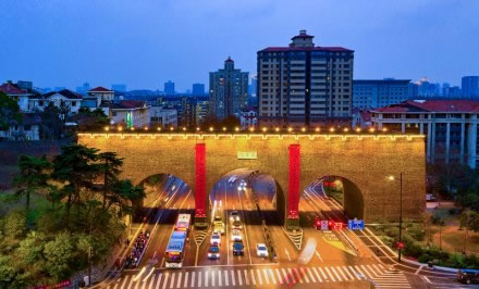 太平門位于玄武湖東南角,是南京明城墻十三座明代京城城門之一,是明朝京師應天府京城的正北門,城門東側(cè)城墻被稱為“龍脖子”。復建后的太平門為方便交通改為三孔城門,主門洞設(shè)四股車道,兩個輔門洞各設(shè)兩股,城門寬約72米。