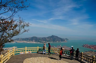 海天一覽觀景臺,建于山崖頂上。依山面海,凌空壯觀,氣勢恢宏,與懸空棧道、懸索橋、云中漫步廊橋相連,總長1180米,直通二桅尖山峰。游客在此,極目海州灣,一覽港島城,山海奇觀,盡收眼底,令人心曠神怡,流連忘返。有詩贊道:“山居有大觀,圖畫入眼簾。曠目千里遠,怡心數(shù)縷煙。島峰浮霧海,帆影接云天。海上長虹落,銀鷗舞蹁躚”。