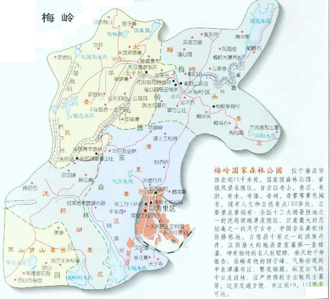 梅嶺風景名勝區(qū)位于南昌市西郊15公里處,在江南最大的“飛來峰”上,因西漢梅福于此修道而得名。又因位于城區(qū)之西,復(fù)又名西山。梅嶺西臨鄱陽湖,北與廬山對峙,方圓150平方公里,是著名的避暑勝地,也是中國古典音律和道教凈明宗的發(fā)源地。